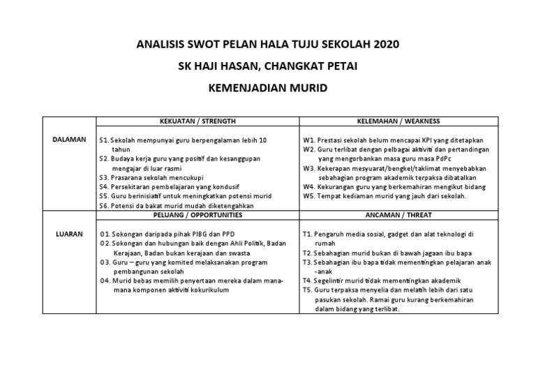 Analisis Swot 2020 Kemenjadian Murid Pdf